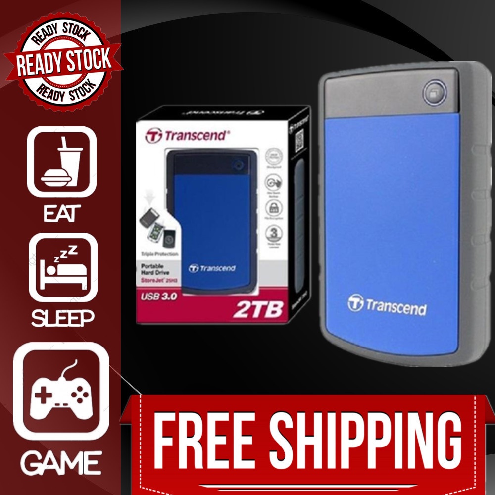 2TB TRANSCEND 25H3 2.5" STOREJET ANTI SHOCK USB 3.1 EXT HDD RUGGED PORTABLE EXTERNAL HARD DISK