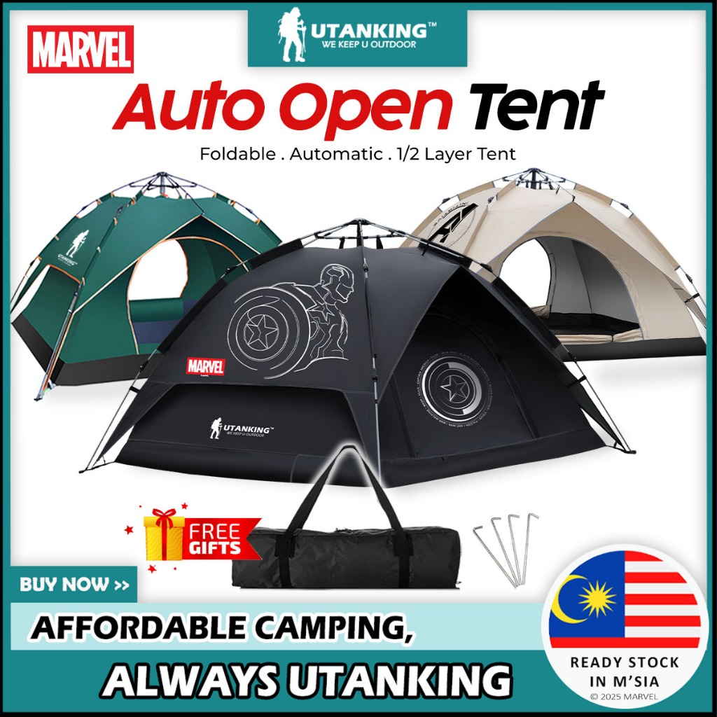UtanKing™ 2m*2m Automatic Tent 2 Doors Outdoor UV Foldable Khemah Auto Tents Camping Khemah Tidur