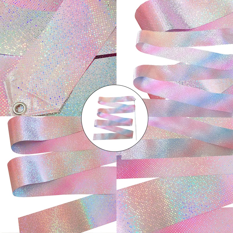 2m Flashing Dance Ribbons, Rhythmic Gymnastics Ribbon Rhythmic Art Gymnastics Ballet Twirling Rod Stick Kids Toys