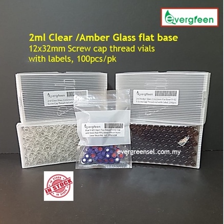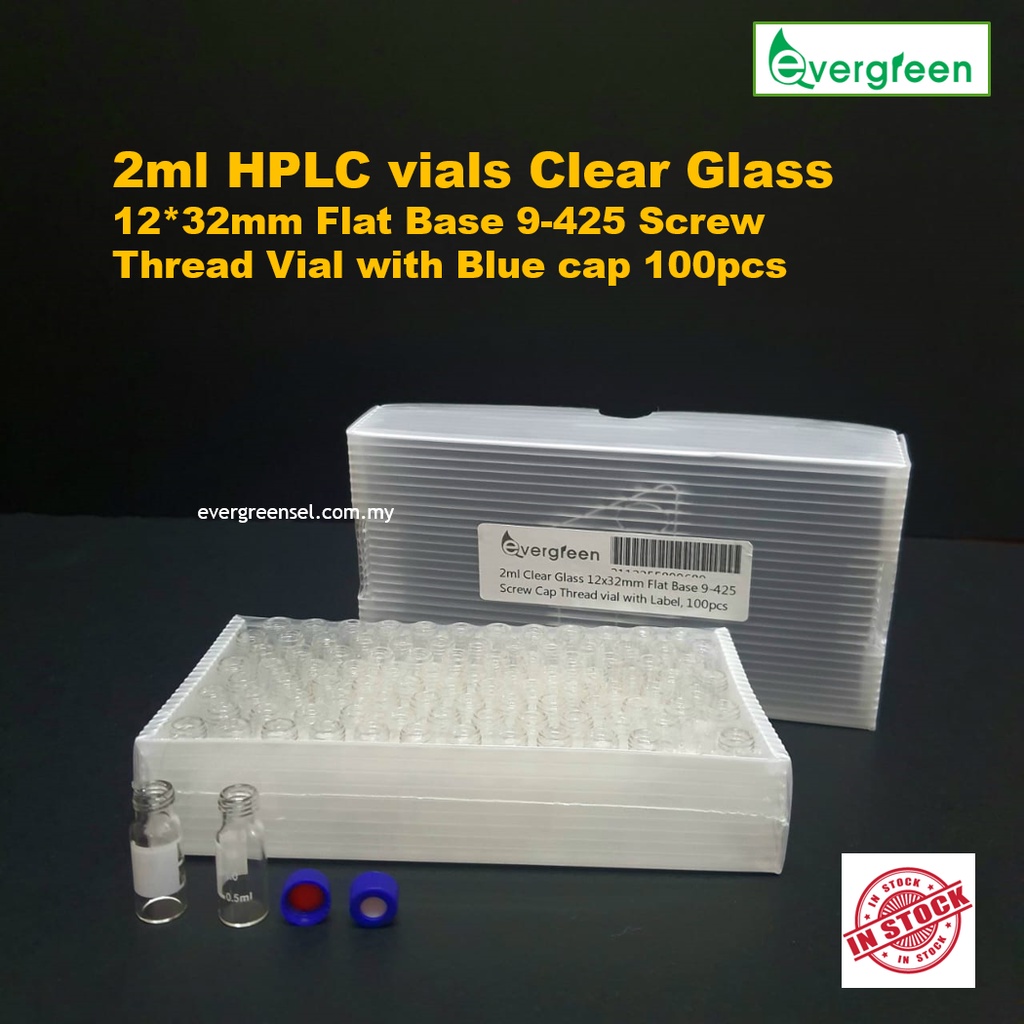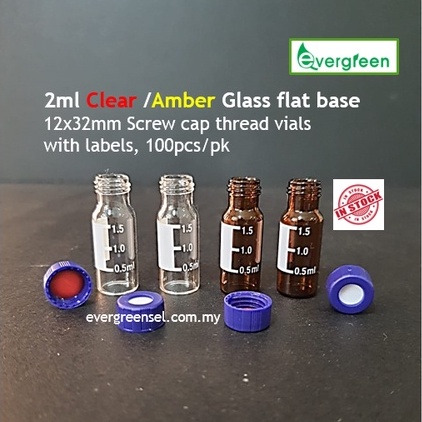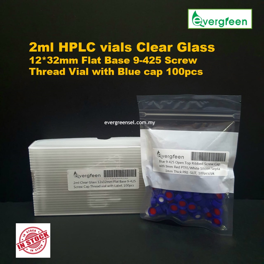 2ml Clear / Amber Glass 12*32mm Flat Base 9-425 Screw Thread Vial with Blue Cap combo set 100pcs/pk