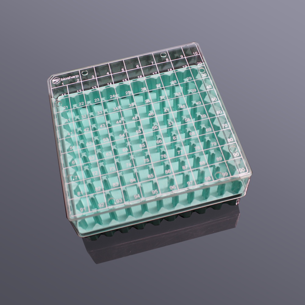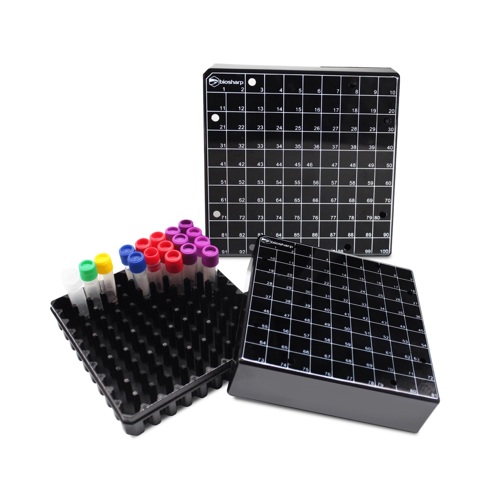 2ml Polypropylene cryogenic vial box with polycarbonate lid, amber box, for 100 vials