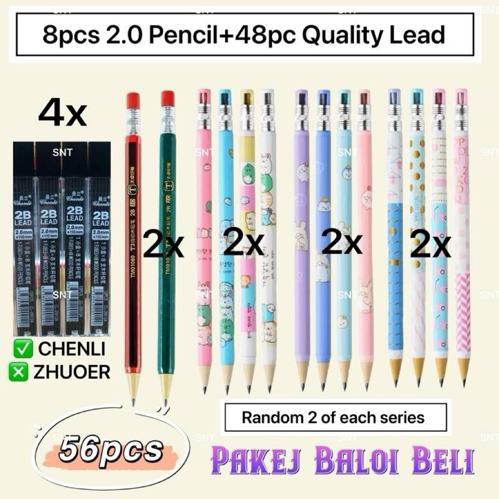 SNT(01063) Pensil Tekan Pensel Tekan 2.0 Cute Mechanical Pencil 2mm Cute Stationary Stationery 按动铅笔