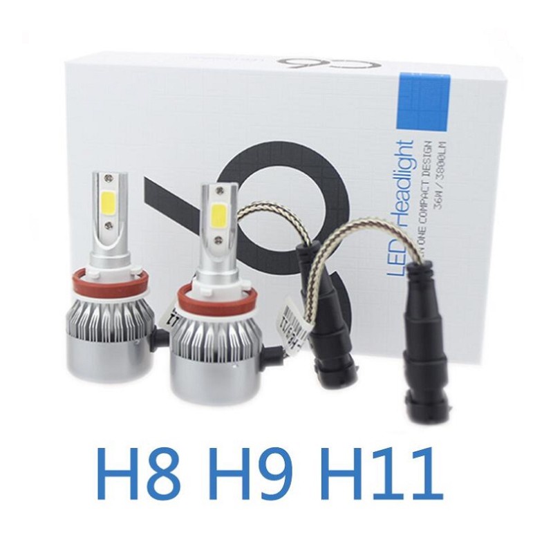 2pc/Set Car C6 Hid Led 6000k Headlamp Headlight Head Lamp Light COB Led Chip H1 H3 H4 H7 H8 H9 H11 9005 9006 HB3 HB4