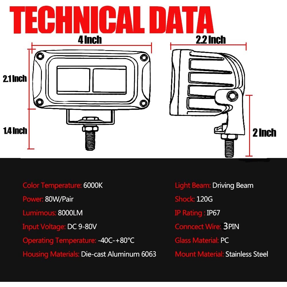 2pcs 4 Inch 80W LED BAR fog light Mini Small Auxiliary Spotlights Offroad Motorcycle Driving Fog Light Cube Light for Truck Offroad Truck Pickup ATV UTV SUV Forklift