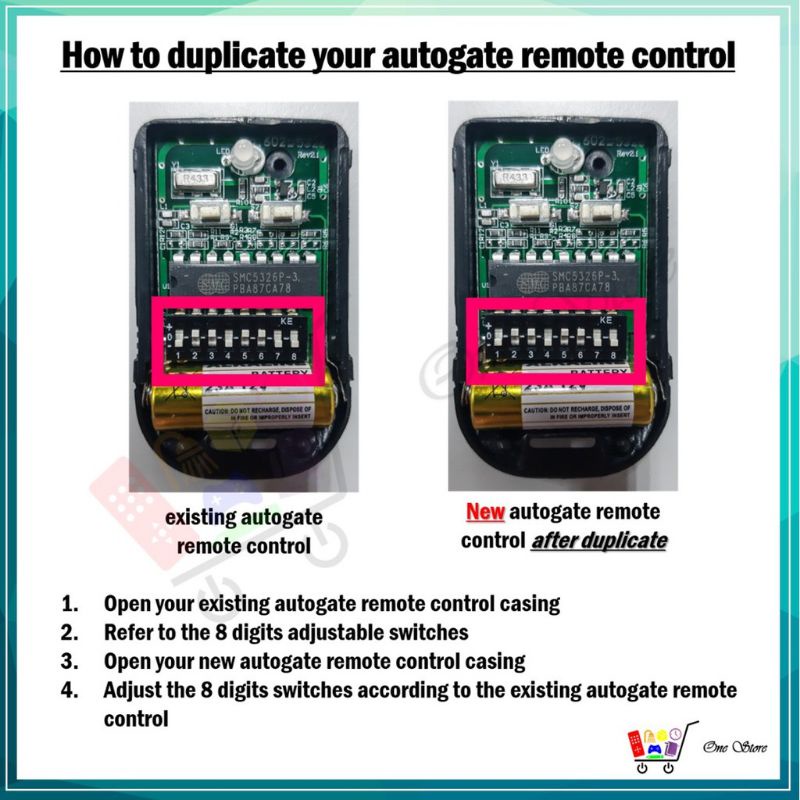 2pcs Auto Gate Door Remote Control Autogate SMC5326 330/433Mhz Dial Code Switch (Free Battery)