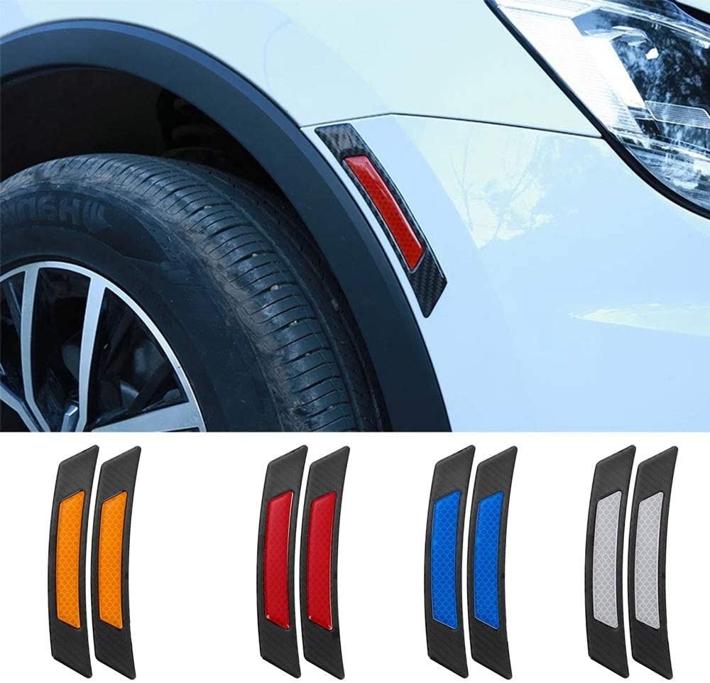 2pcs/Car Reflective Sticker Tape Strip Car Sticker Body Decoration Carbon Fiber Car Bumper Strip Wheel Reflective Warning Sticker