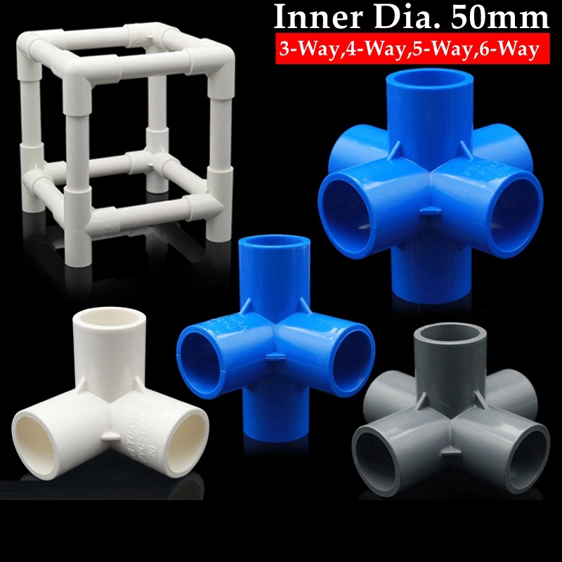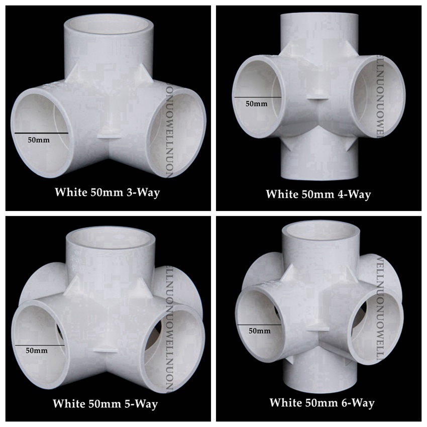 2pcs Inner Dia. 50mm PVC Connectors Water Pipe Connector Stereoscopic Joints Home DIY Shelf Parts 3,4,5,6-way Splitters