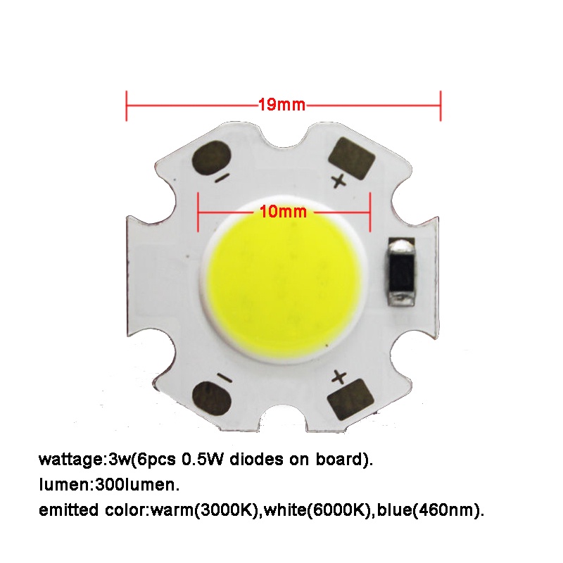 2pcs Input 3.7V 5V 3W Warm White Blue LED COB Light + 19mm Star Base