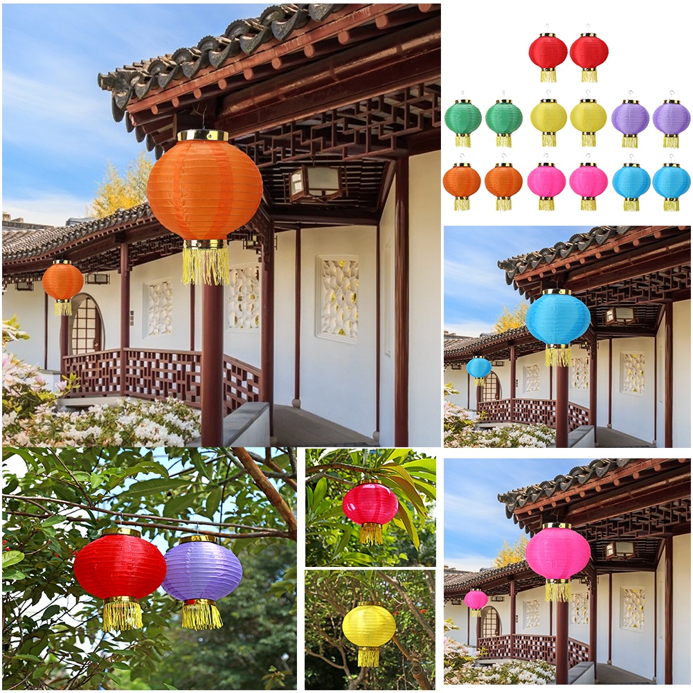 2pcs LED Solar Lantern Lights Waterproof Chinese Hanging Ball Lamps Decor
