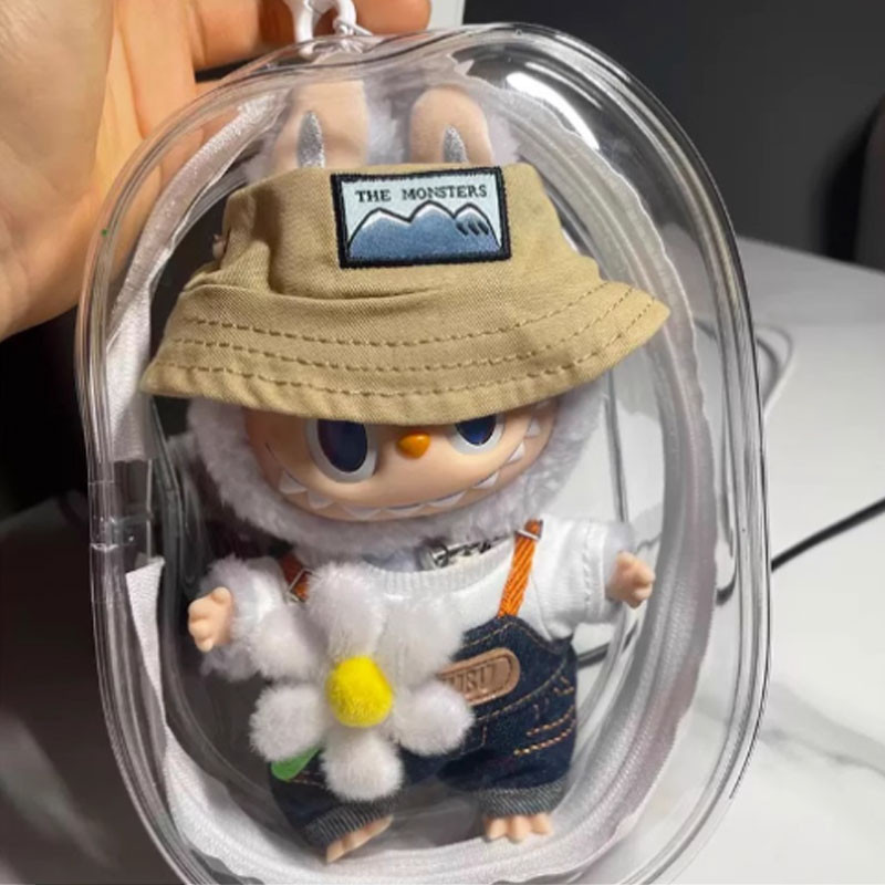 ( 🔥MY stock🔥)2pcs Labubu Transparent Protective Acrylic Case Keychain Wallet Doll Storage Box Thicken Toy Portable Labubu Dolls Accessories Gifts Home Decorate