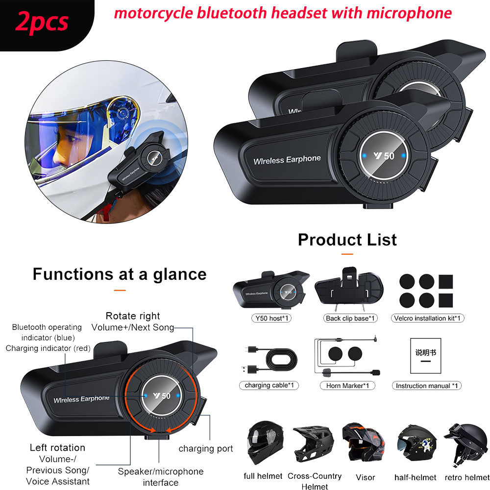 2pcs Motorcycle Helmet Bluetooth Headset Voice Control Wireless Hands-Free Call Waterproof Communicator Speaker Headset Bluetooth Intercom 5.3