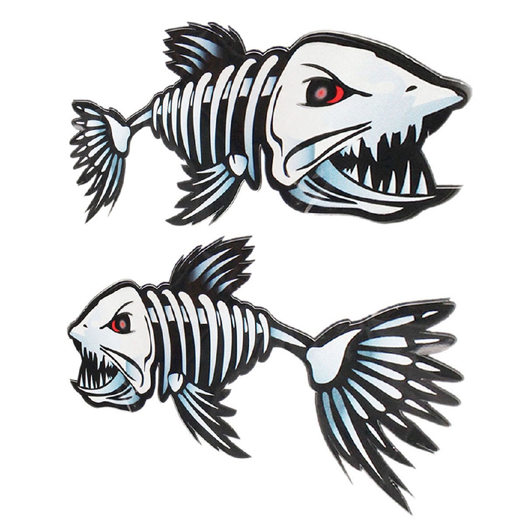 2pcs Skeleton Fish Bonefish Vinyl Decal Sticker Kayak Car Graphics
