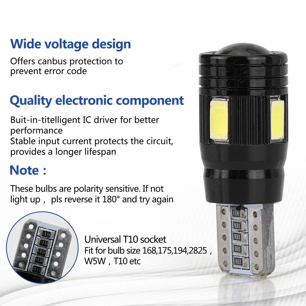 2pcs Super White T10 LED High Power Projector Backup Lights Reverse Marker Car