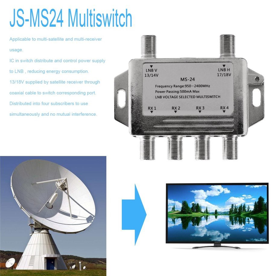 2x4 MS-24 Satellite Signal Multiswitch LNB Voltage Selected Switch