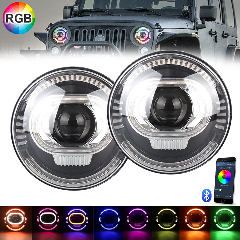 2x7 Inch LED Headlights Assembly with RGB Halo White DRL Amber Turn Signal for Jeep-Wrangler JK TJ CJ LJ Hummer H1 H2.