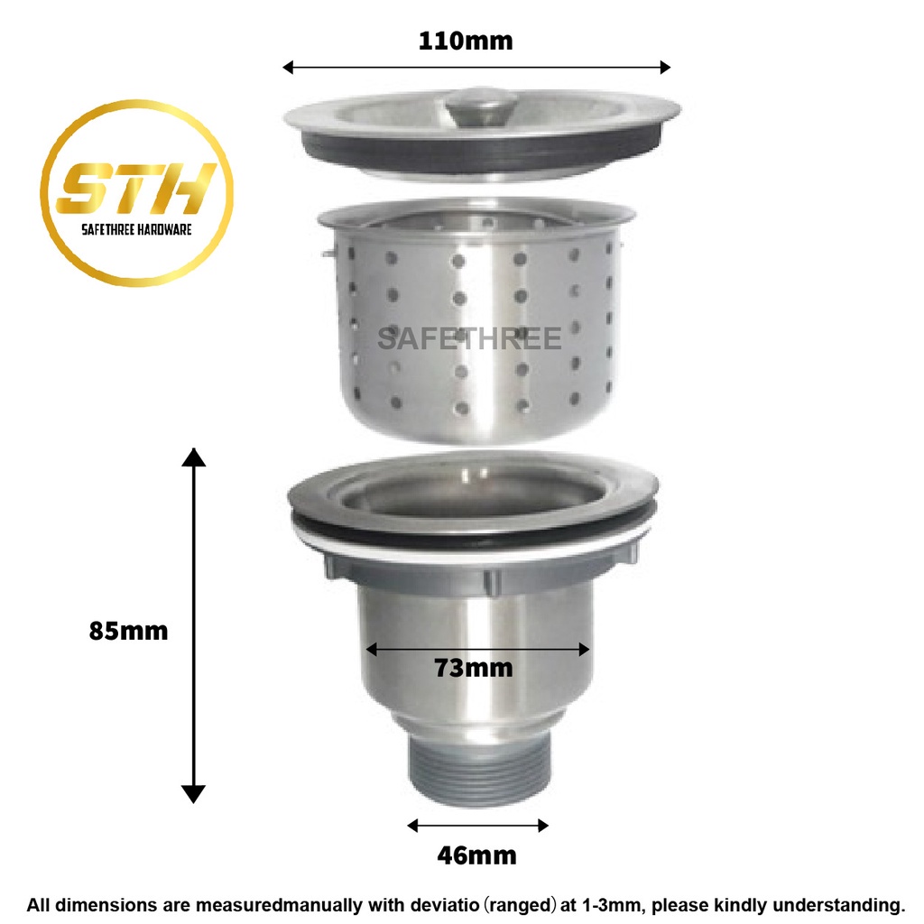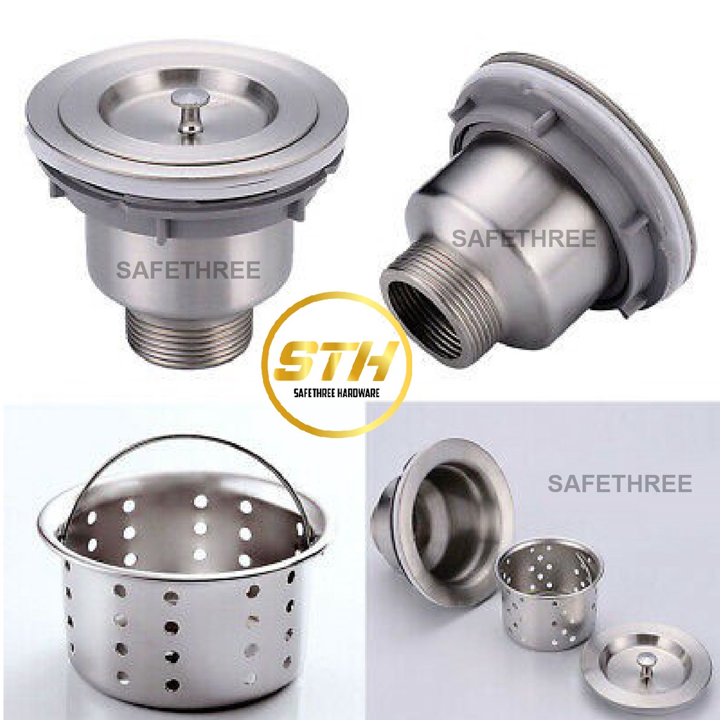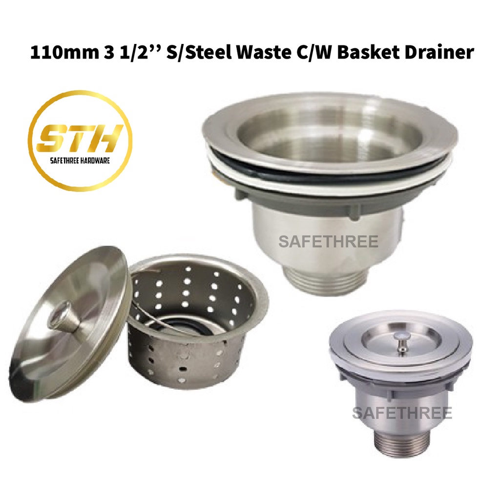 3 1/2'' (110mm) SUS304 Stainless Steel Waste c/w Basket Drainer S/Steel Waste with Filter Trap