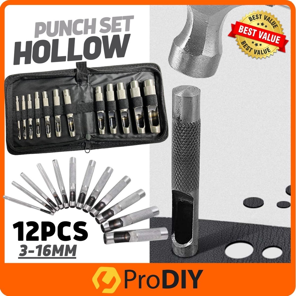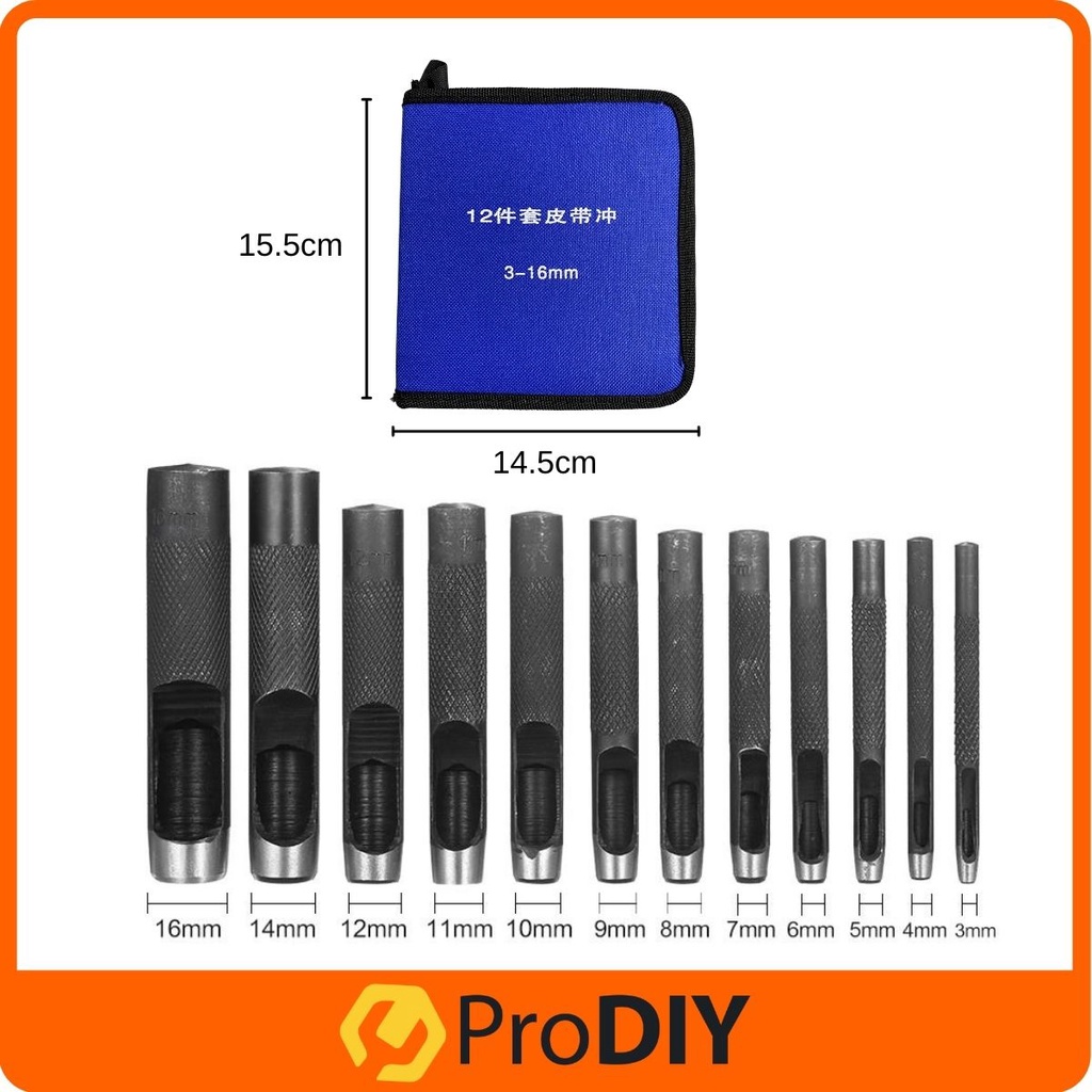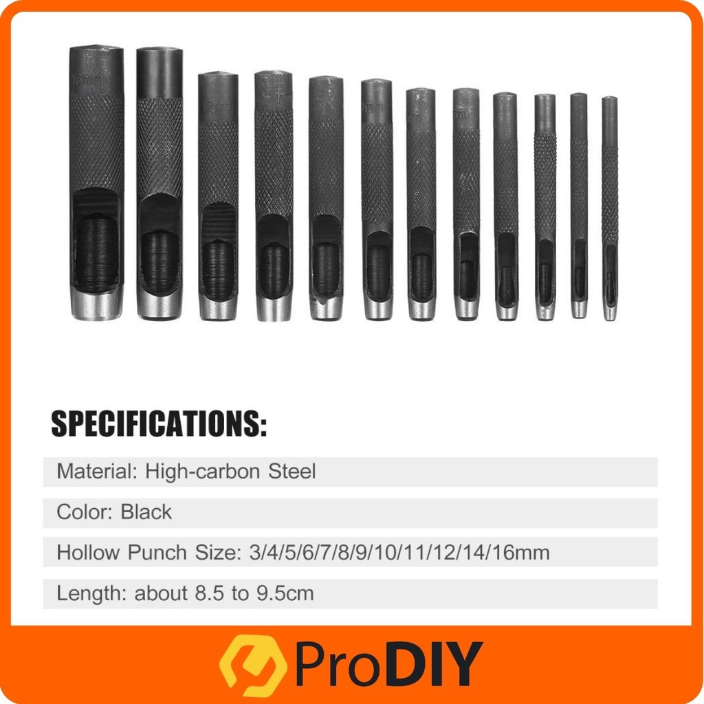 12pcs 3-16mm Hollow Punch Set Heavy-Duty Leather Round Hole Punch Cutter With Sizes 3/4/5/6/7/8/9/10/11/12/14/16mm