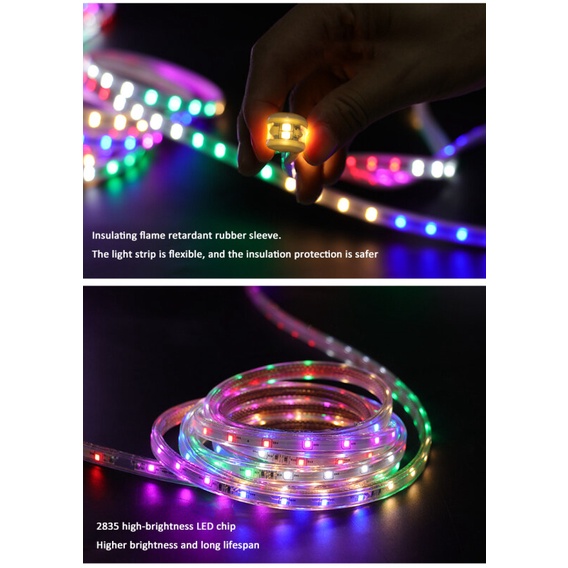 3-25 Meters LED Strip Light w/ EU Plug SMD2835 RGB Waterproof 220V 48 LEDs/M Flexible LED Strip High Quality Outdoor LED Lamp Colorful Light Raya decoration Ramadan