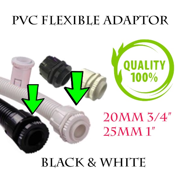 3/4" 20MM | 1" Inch 25MM PVC FLEXIBLE ADAPTOR ( WHITE / BLACK ) For PVC Flexible Conduit