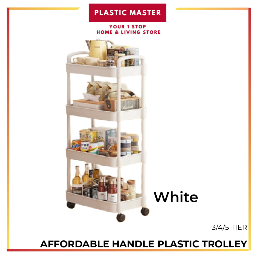 3/4/5 Tier Trolley Home Kitchen Storage Organizer Handle Basket Trolley Rolling Utility Cart Snack Storage Trolley