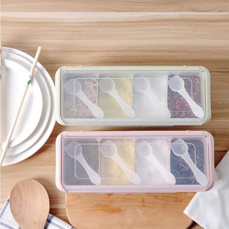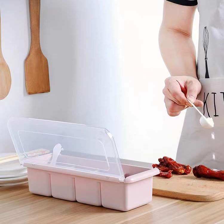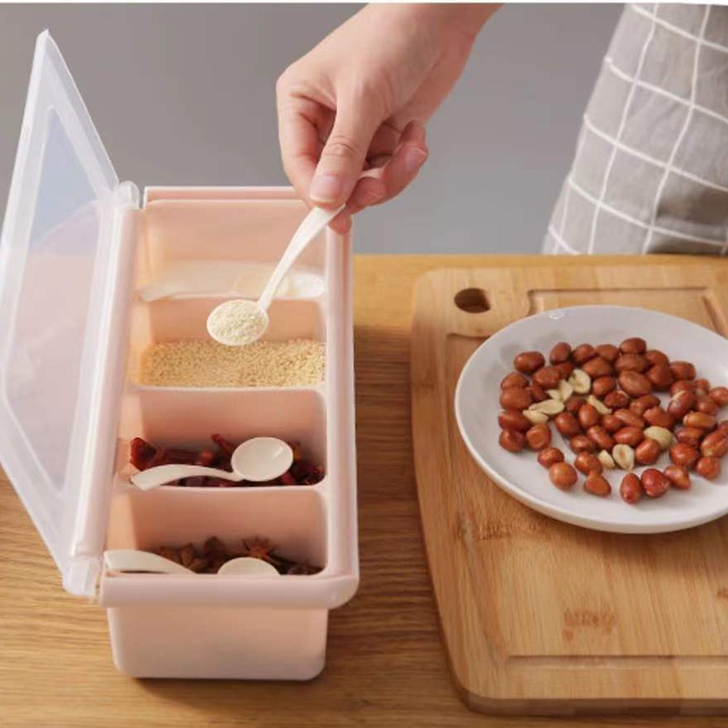 3/4 Grid Spice Storage Container Compartment Spice Rack Spice Box With Lid Spice Jar Seasoning Container Kitchen Storage