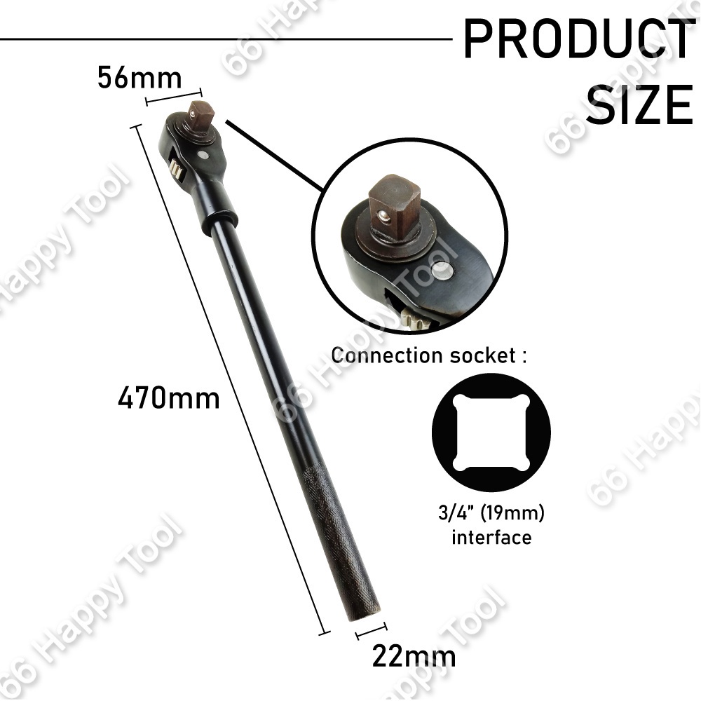 3/4" Heavy Duty Ratchet Wrench Socket Long Handle 19mm Square Drive Extendable Two Way Quick Release Labor-Saving Tool