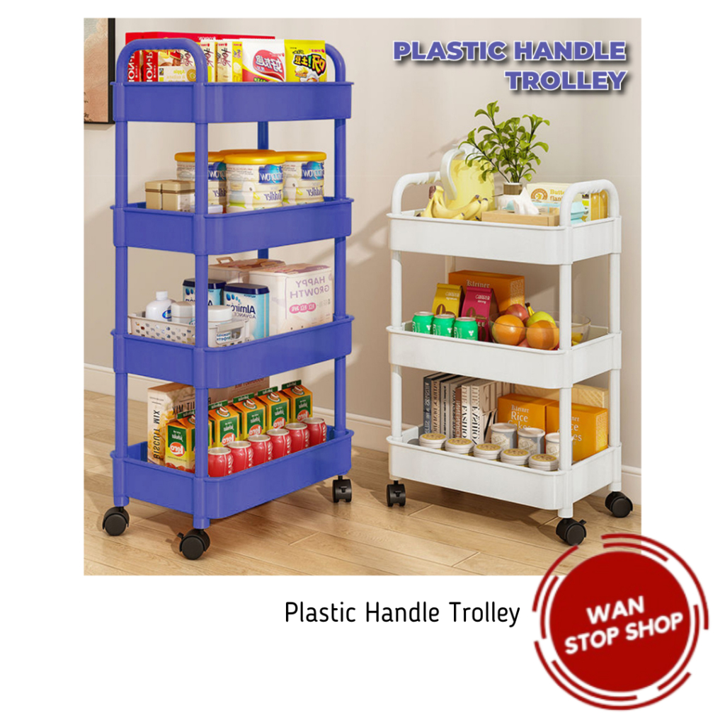 3/4 Tier Plastic Trolley Cart Handle, Plastic Trolley Storage Racks With Handle Office Kitchen Home Use