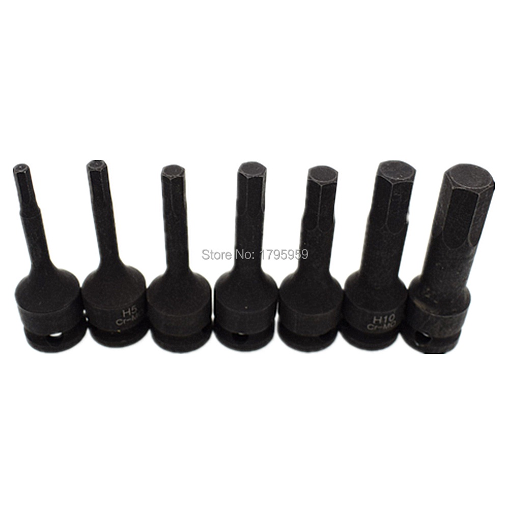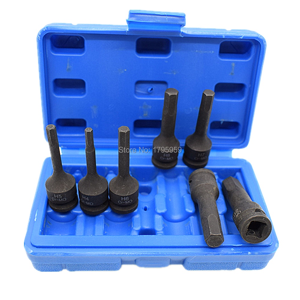3/8" Square Drive Impact Socket 7 Piece Hex Key Socket Set H4 H5 H6 H7 H8 H10 H12 (4mm-12mm) Cr-Mo Metric Allen Bit 60mm