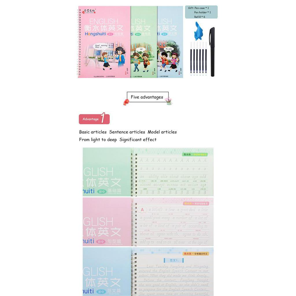 3 Book/set Hengshui Reusable English Word font copy book Set copybook for calligraphy kids adult handwriting writing books libros