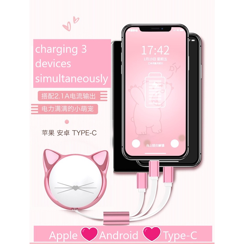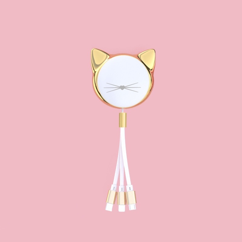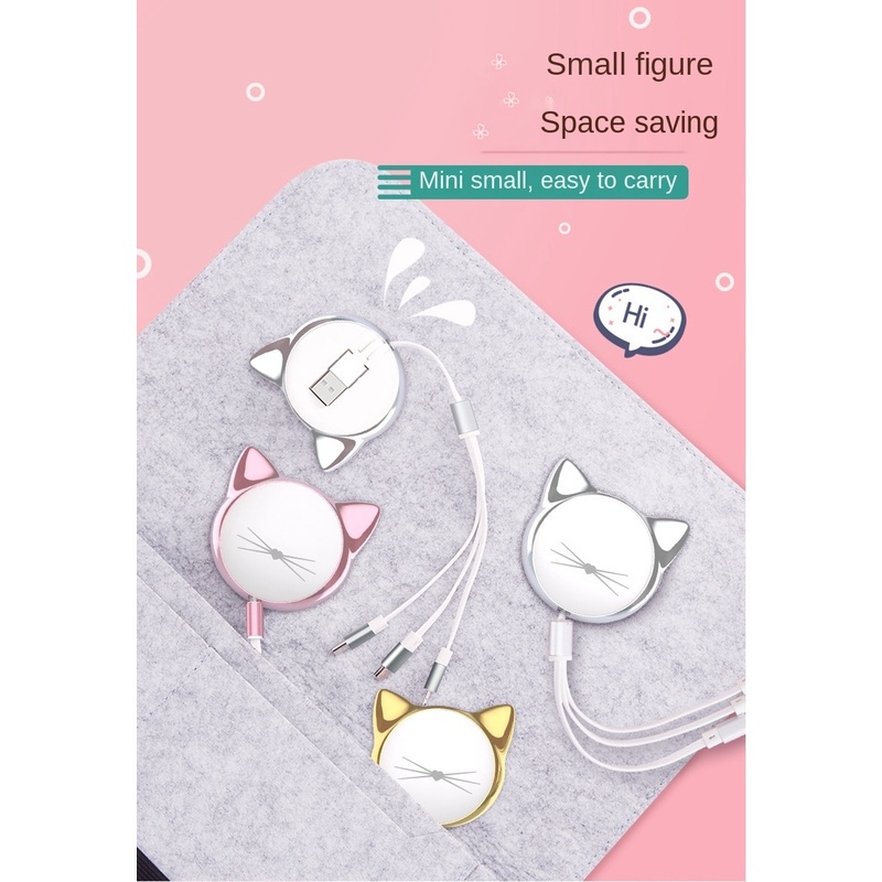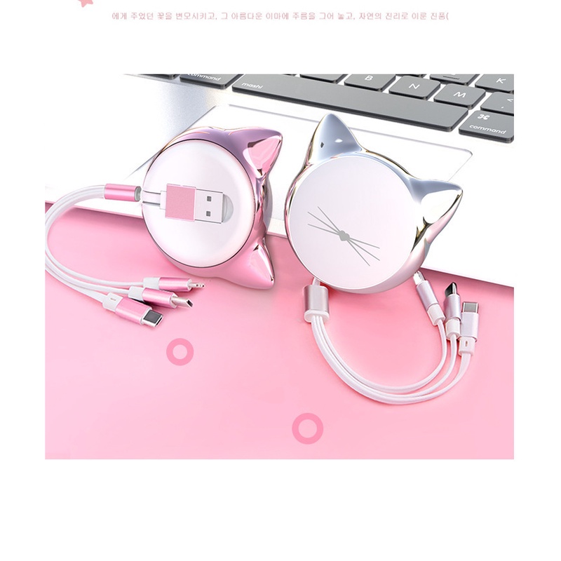 3 In 1 Cutie Cat Fast Charging Cable Premium Design Retractable 2A For Type-C Android Cable