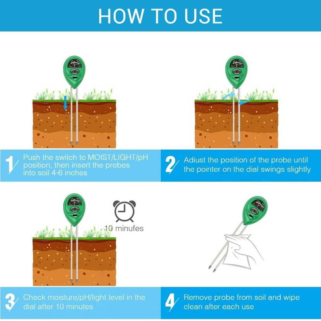 3 In 1 Ph Tester Plant Flower Soil Water Moisture Light Ph Meter Hydroponics Analyzer Test Detector Garden