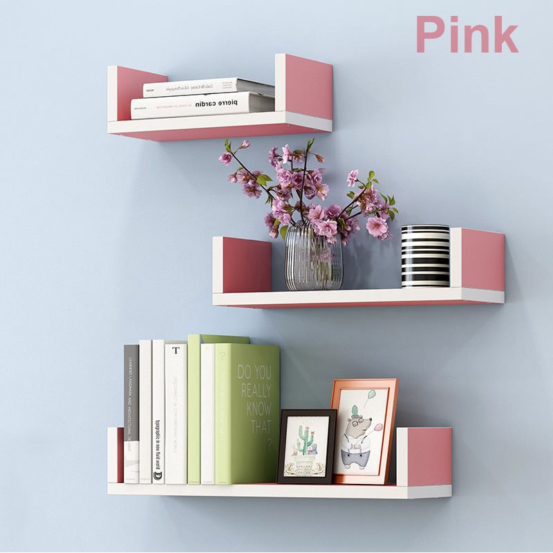 3-In-1 Undrill Wall Shelves U Shape Wall Frame Bedroom Simple Wall Shelf Living Room Wall Rack Bookshelf U Shape