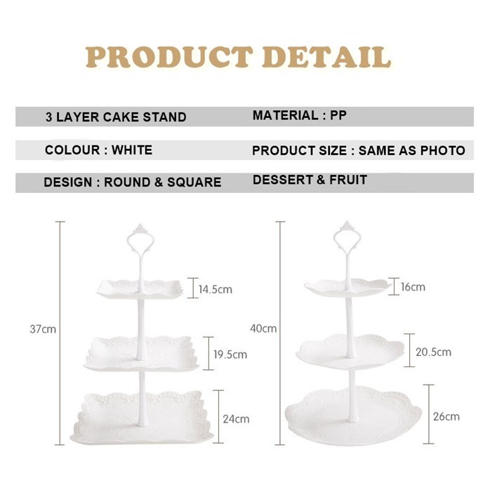 3 Layer Cake Stand high tea deco round/square