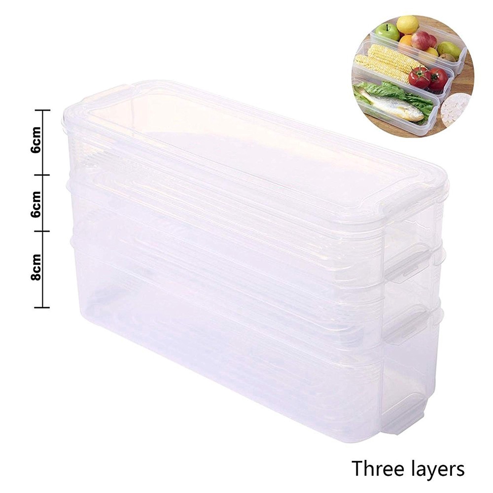 3 Layer Stackable Freezer Plastic Refrigerator Storage Bins Organizer With Lid