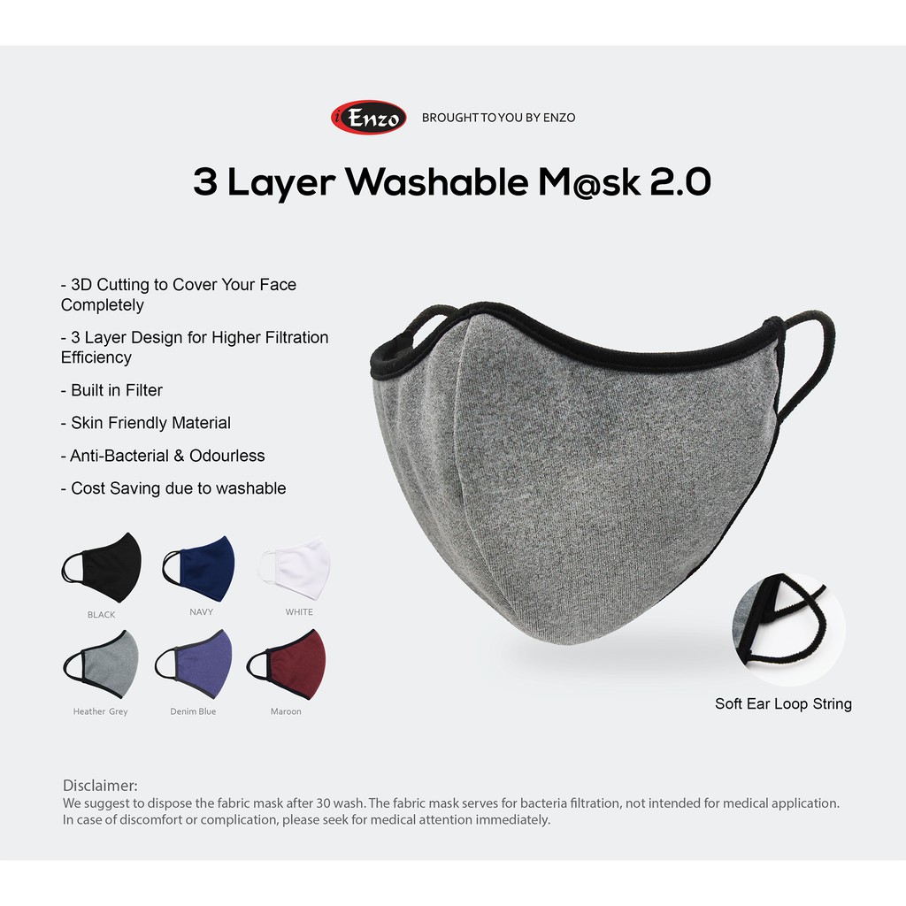 3 Layer Washable Fabric Mask 2.0 -ENZO Mask-