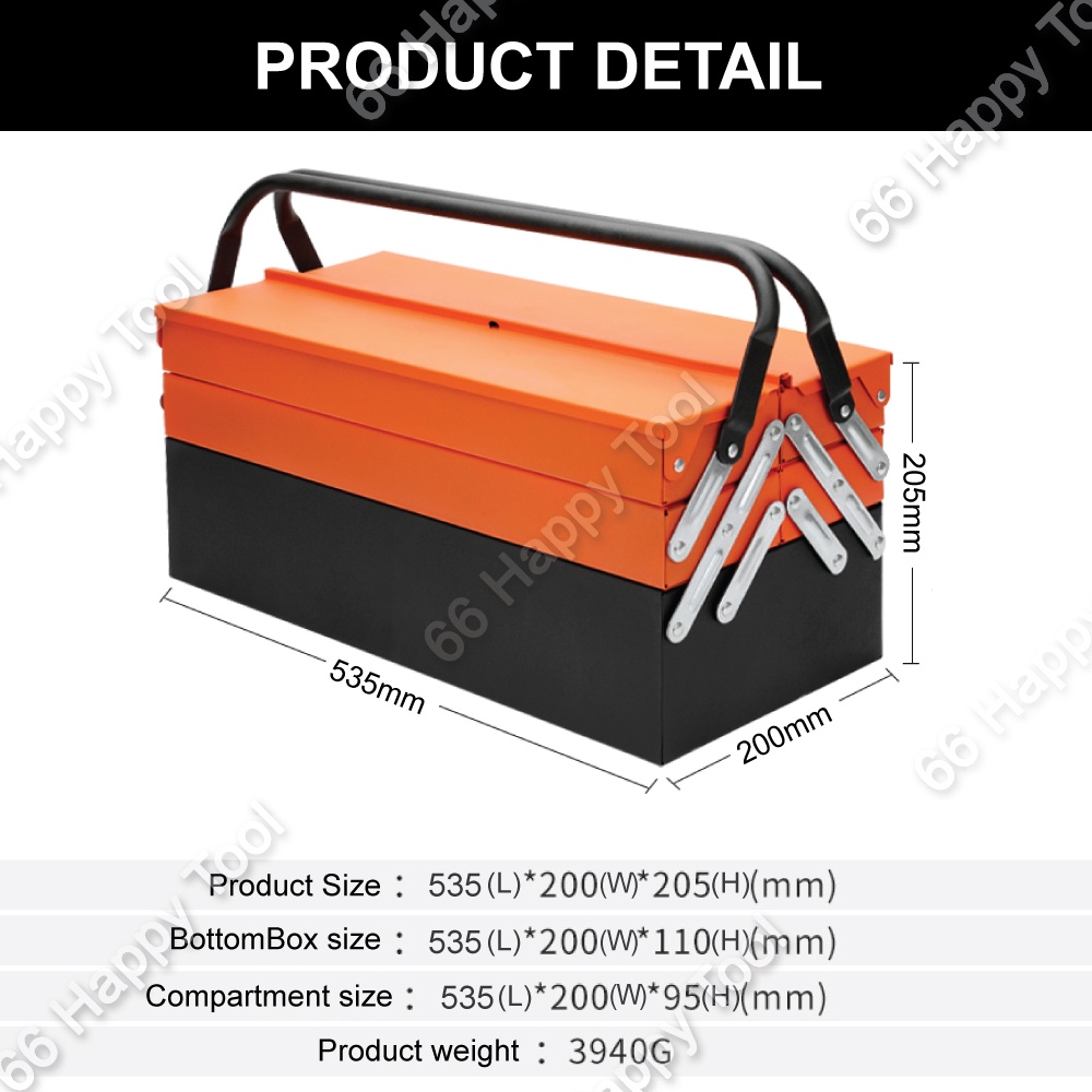 3 Layers Portable Cantilever Metal Tool Box 5 Tray Heavy Duty Large Storage Organizer Solid Metal Tool Box