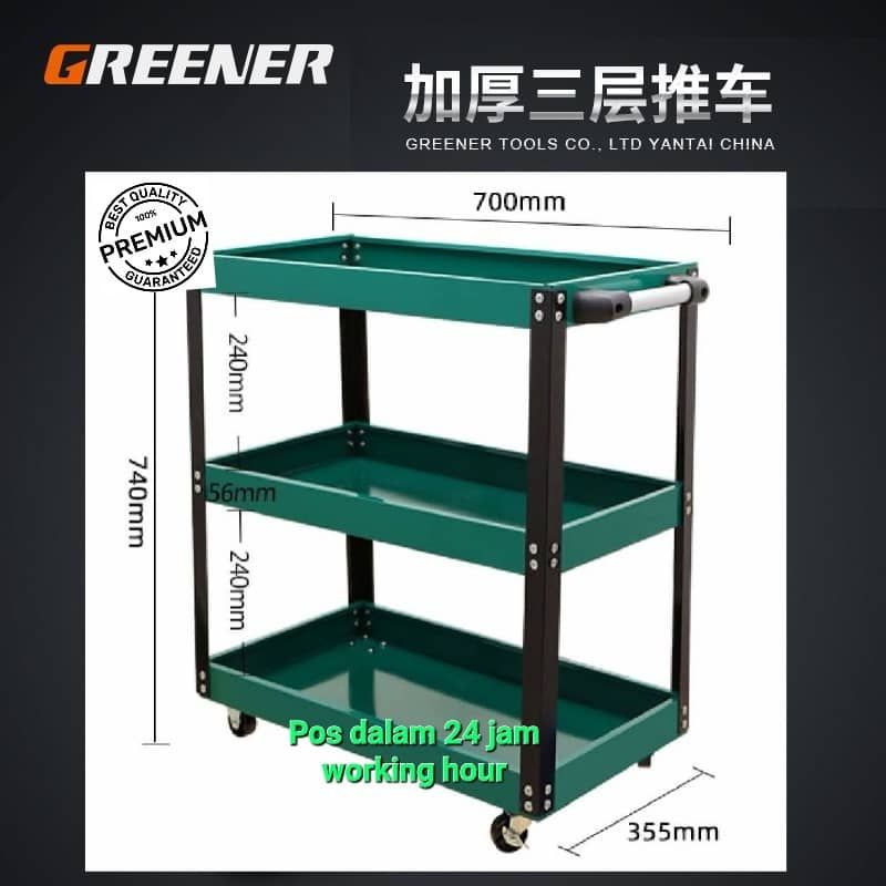 3 Layers Service Cart Metal Steel Tool Trolley 150KG Barang Garaj Bengkel Tools Shelf Storage Tiga Tingkat Layer