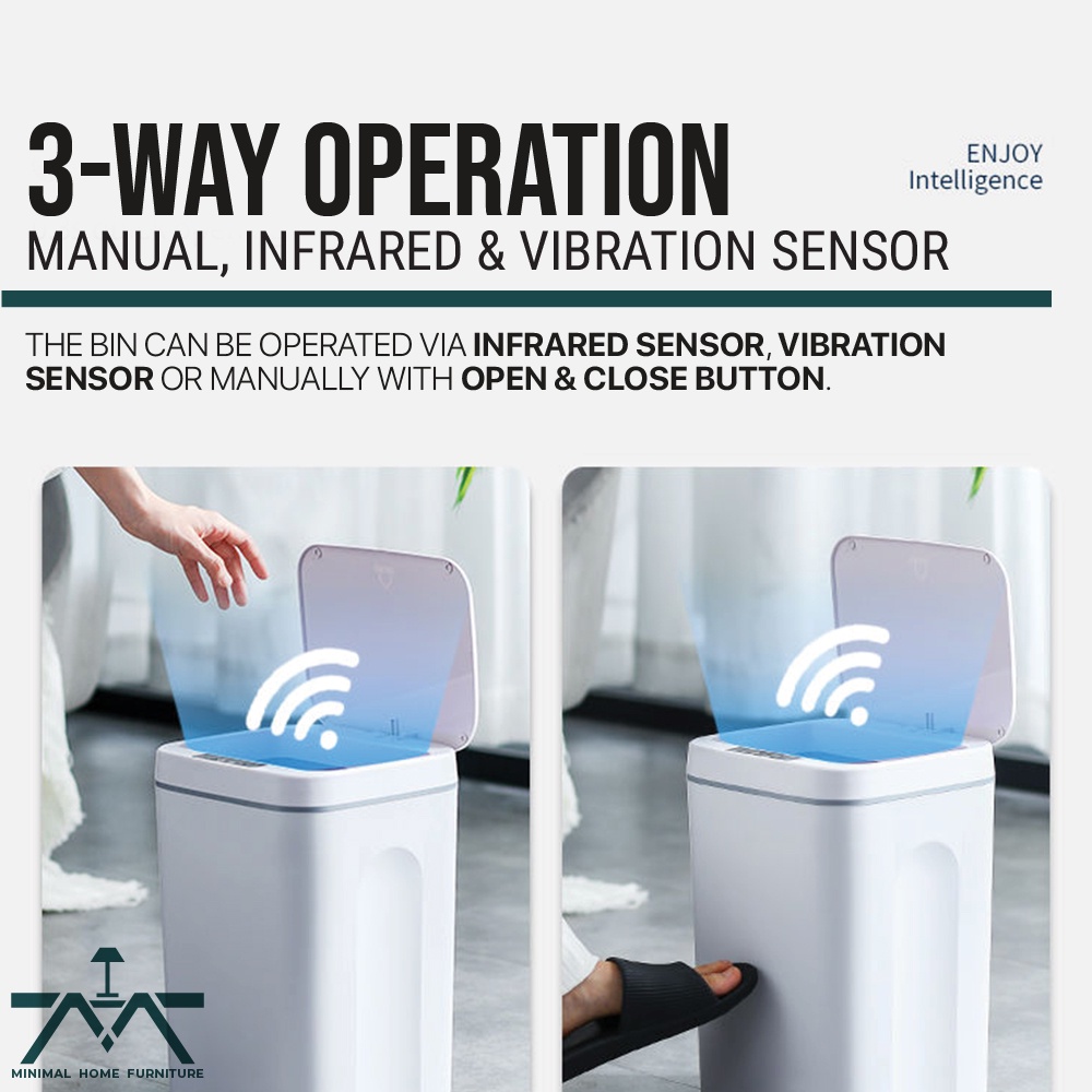 3 Mode Automatic Touchless Big Volume Smart Sensor Dustbin Garbage with LED Infrared Sensor Vibration Sensor Tong Sampah