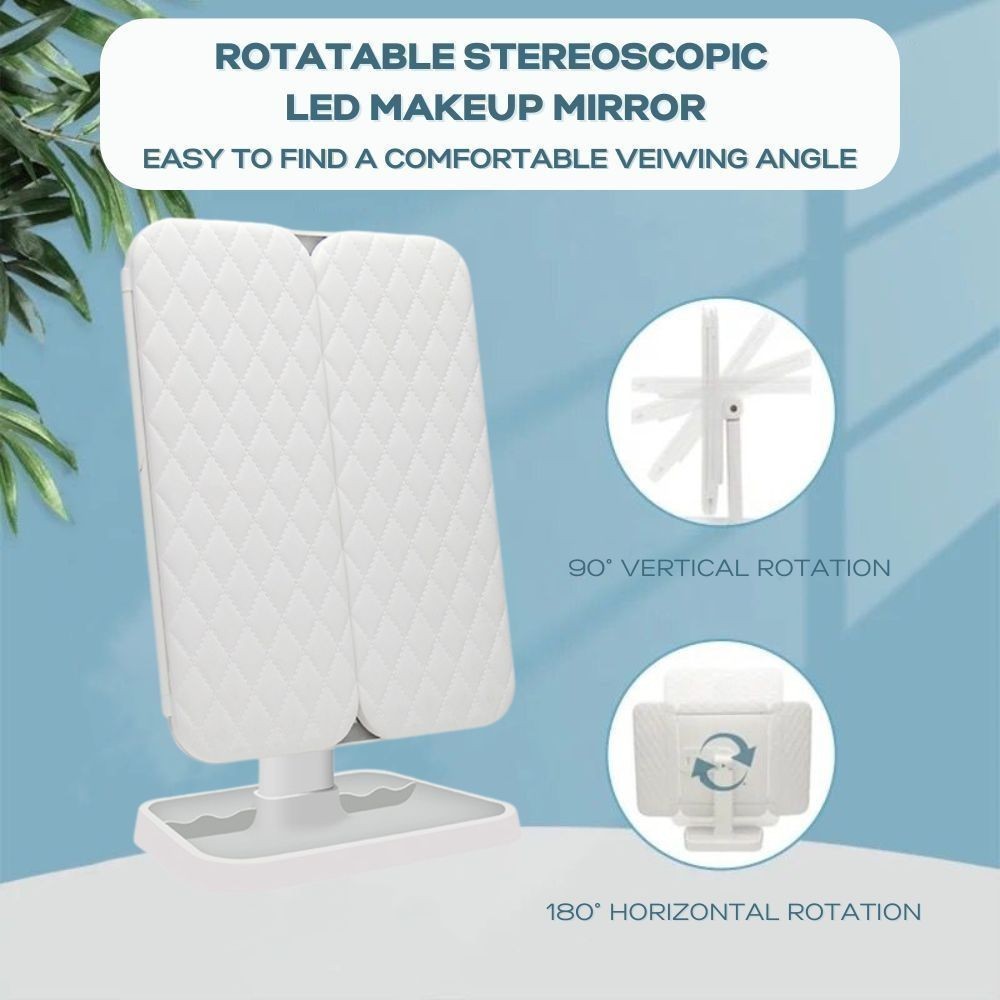 3 Modes Rechargeable LED Desk Mirror Vanity Mirror With Lights Makeup Mirror Touch Control Adjustable Light Face Mirror