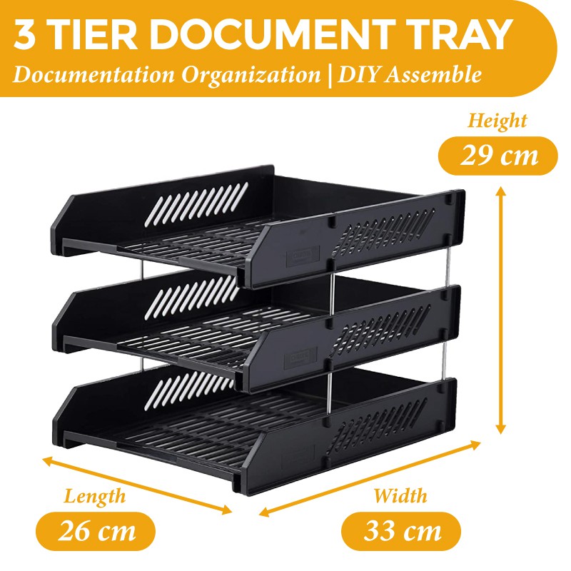3 Multi-Tier Plastic Document Tray Easy Organization with Secure Metal Rider Rod Documentation Filing Document Paper