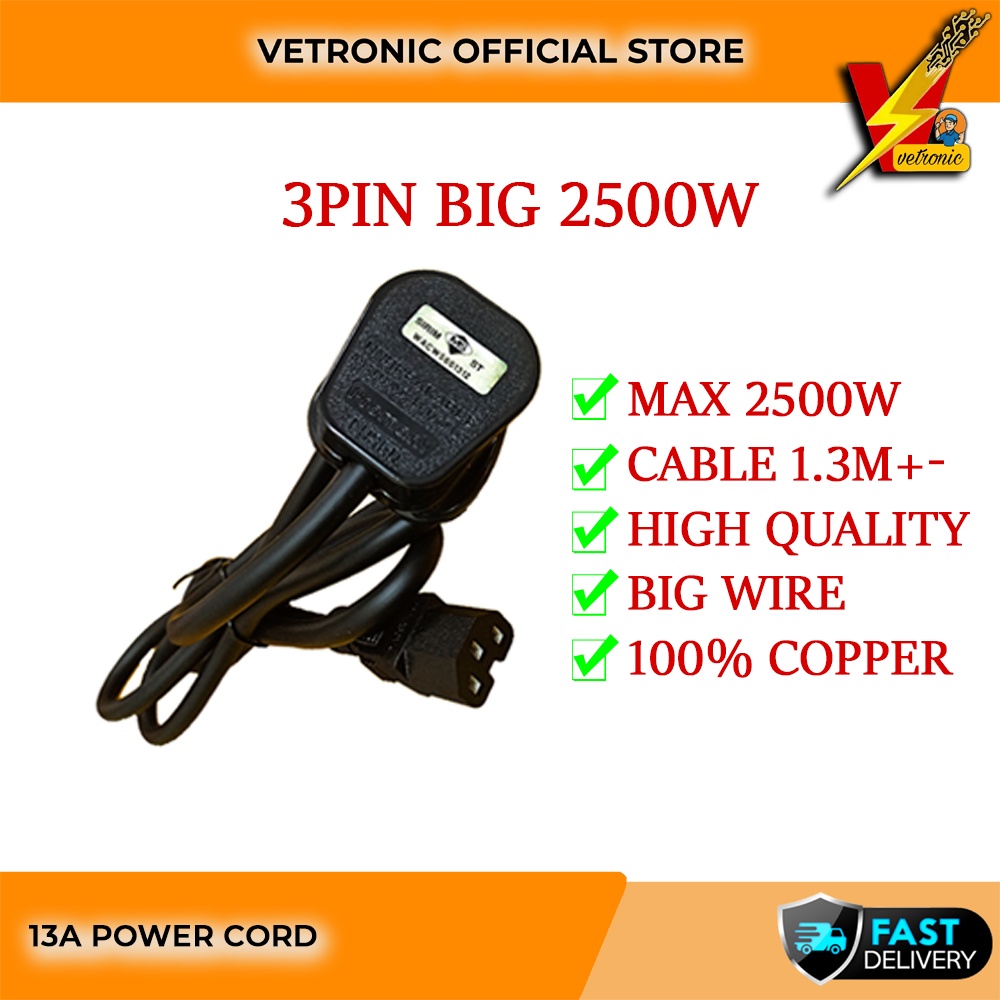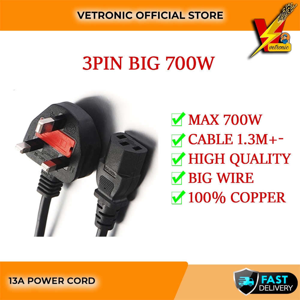 3 PIN Power Cord 13A Fuse Desktop PC LCD Monitor Laptop Printer Power Supply Cord Cable Wire