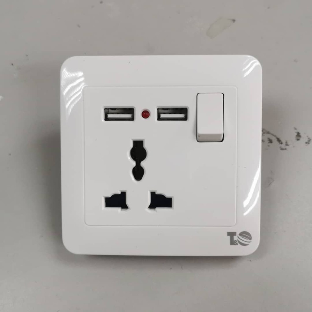 3 PIN UK / MULTI PLUG USB WALL SOCKET WITH SWITCH AC/DC 2.1 A USB CHARGER (STANDARD FOR MALAYSIA)