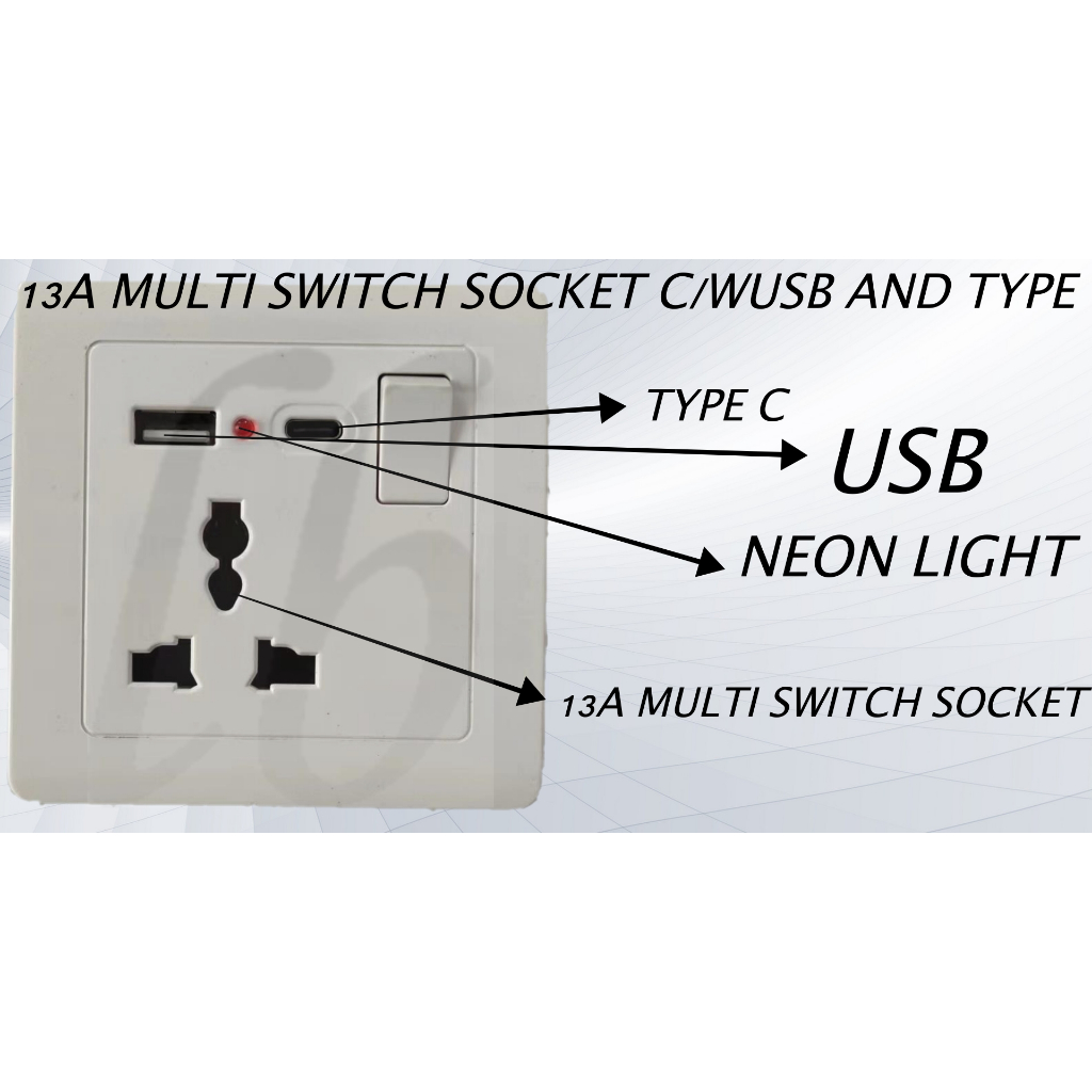 3 PIN UK / Type C USB Wall Socket Switch Charger Plug Power Adapter Malaysia Wall Socket