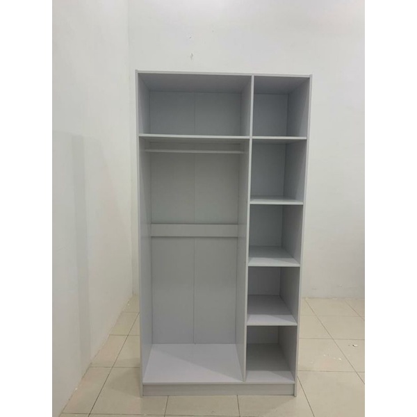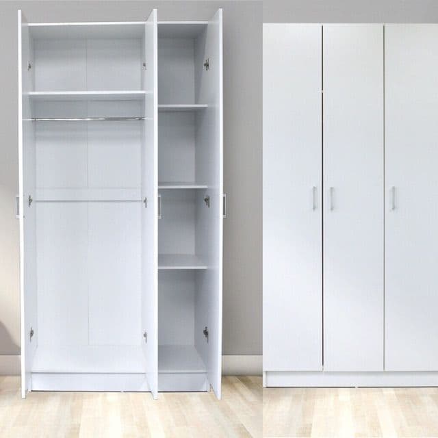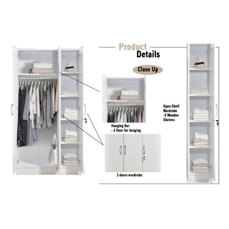 3 PINTU Almari Saiz Besar Wardrobe 6 Shelves Rak Baju Sangkut Cabinet Kabinet Pakaian Putih White Storage Tinggi 179cm