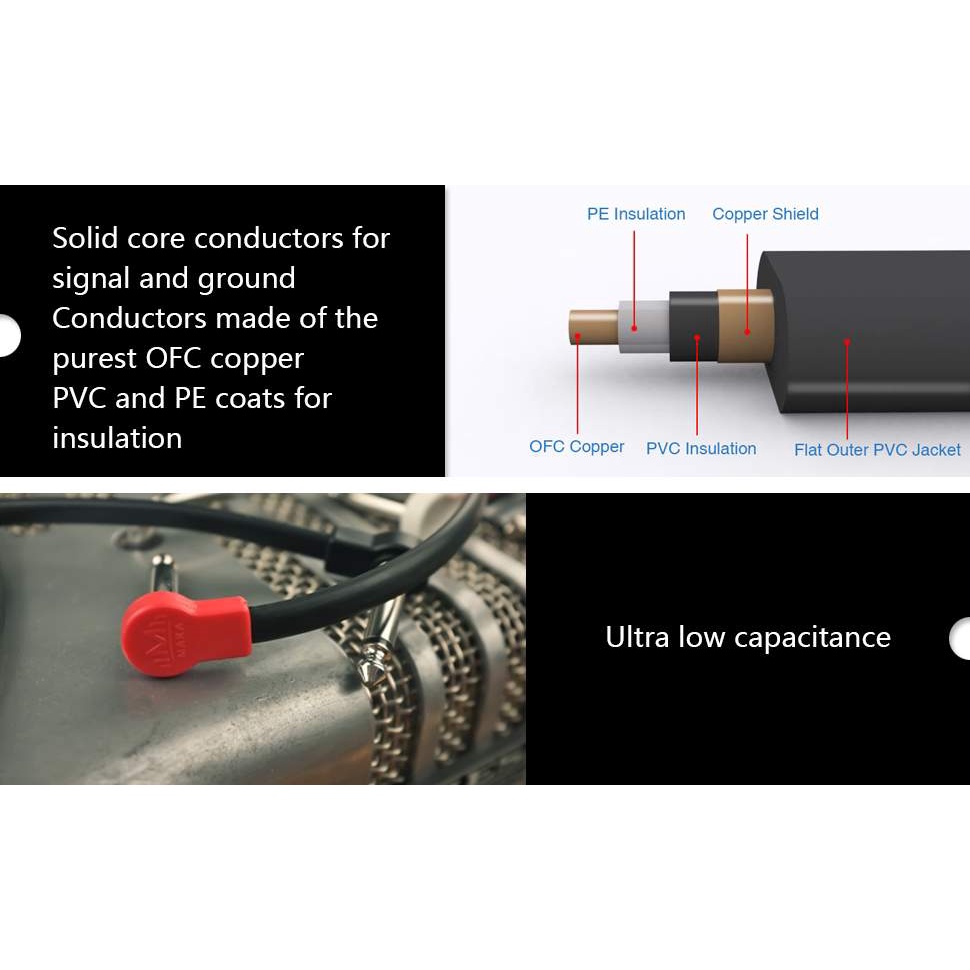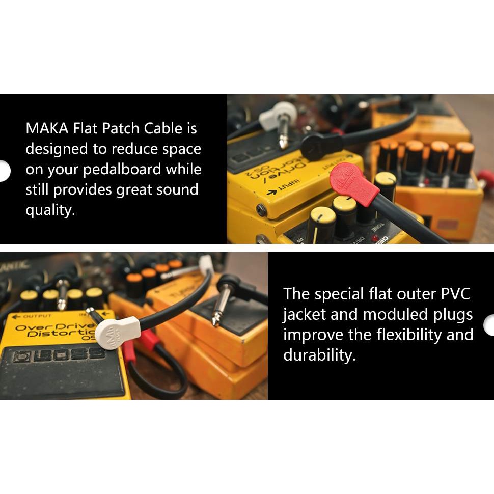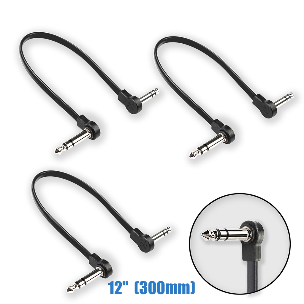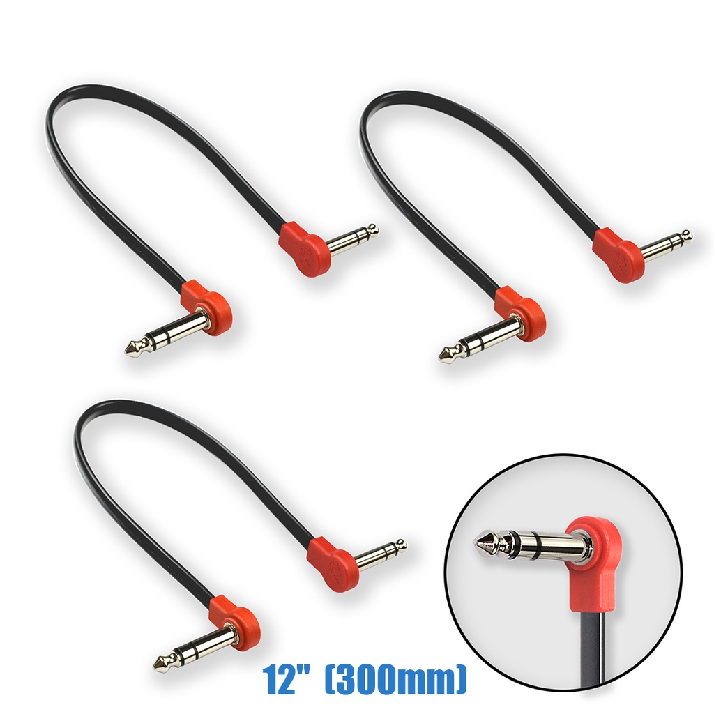3-Pack MAKA Flat Low Profile Stereo(TRS) Guitar Pedal Patch Cable 12 inch (30cm) Black/Red