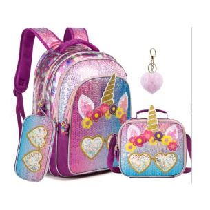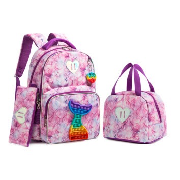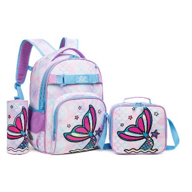 3 Pack Mermaid Backpack, Backpack Set for Girls, 17 Inch Backpack with Lunch Box/Lunch Bag and Pencil Bag for Preschool Backpack, Backpack for Kids, Backpack for Elementary School