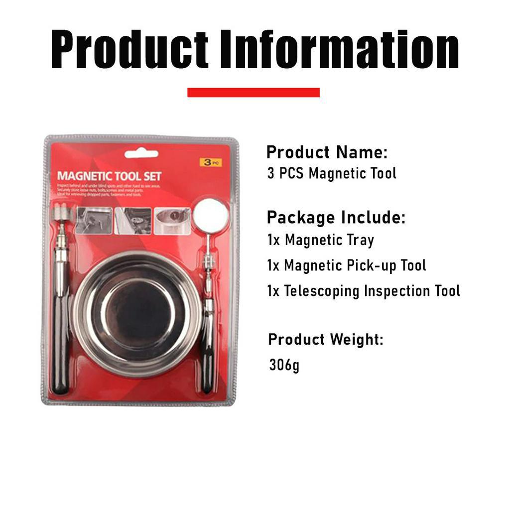 3 Pcs Magnetic Tool Set Magnetic Tray Pick-up Tool Telescoping Inspection Mirror Durable 360 Swivel Adjustable
