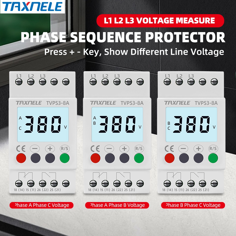 3 Phase 380VAC Adjustable Under Over Voltage Protector Voltage Monitoring Meter Sequence Protection Relay Voltage Unbalance