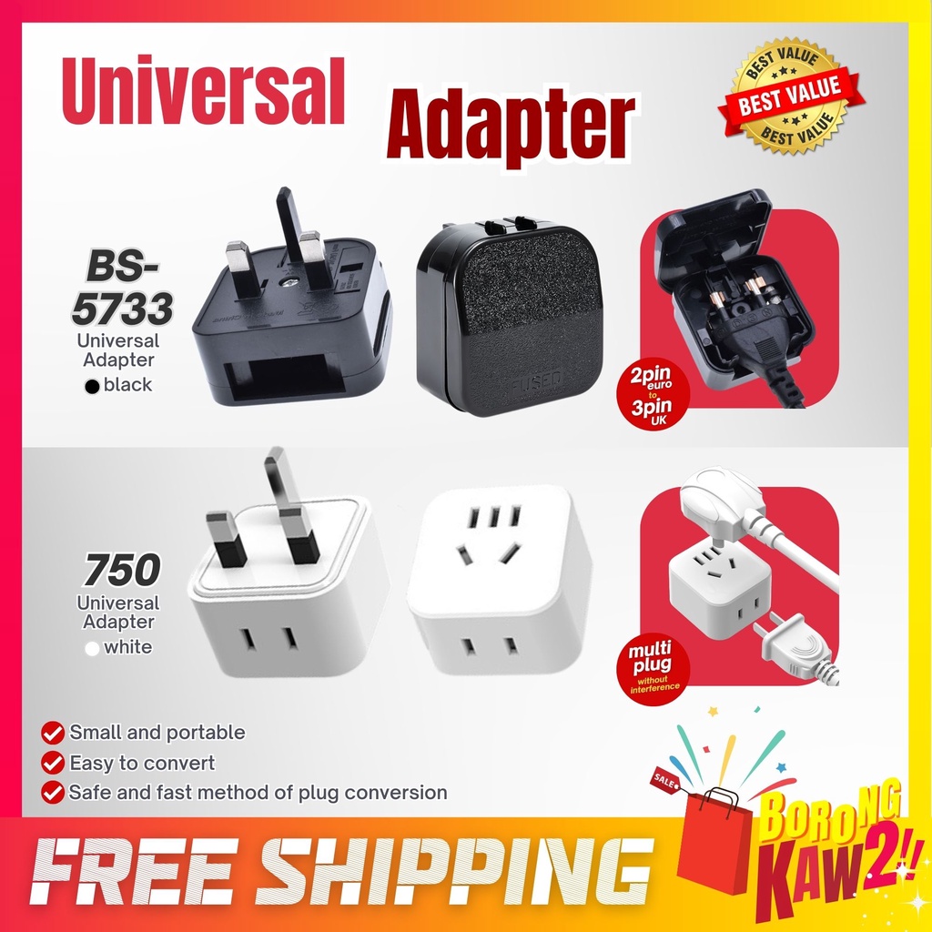 3 Pin Conversion Plug Adapter 250v Plug Converter 2.5a / Universal Adapter 2 Pin To 3 Pin Plug / 10a Malaysia Plug