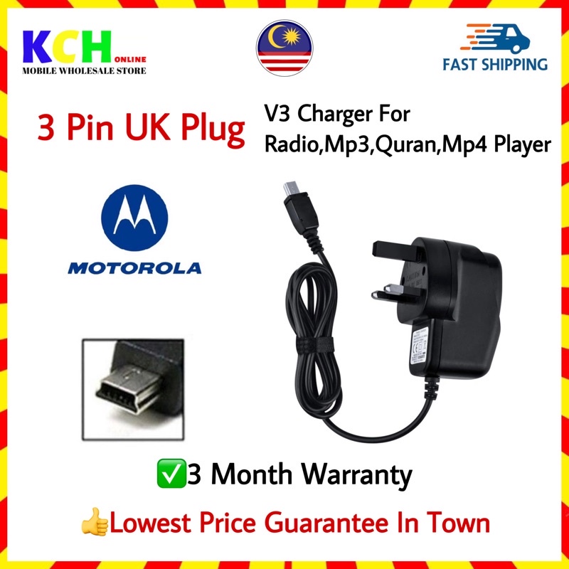 3 Pin UK Plug Motorola V3 Charger For Quran Alquran kecil,Poket Radio,GPS,DVR Charge